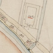 Tekening op schaal, die de situatie voor 1907 weergeeft. (1,2,3,6)