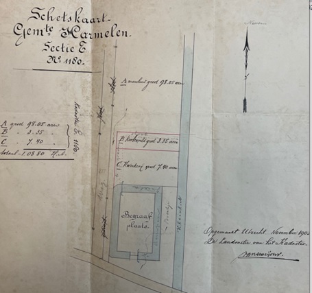 Kaart bij kadastrale meting uit 1903 die gemaakt is bij de aankoop van de grond voor de uitbreiding. (6)